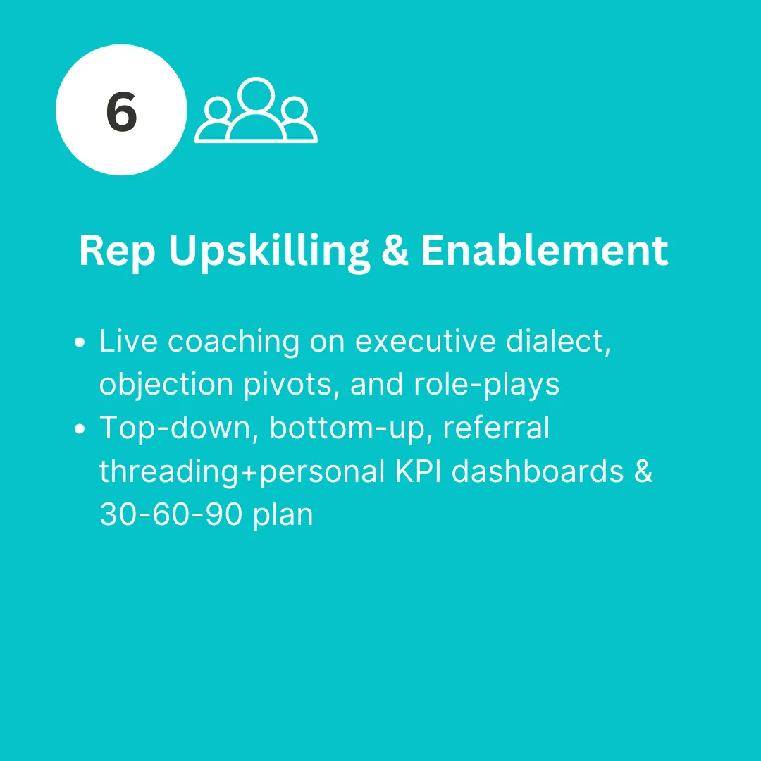 We'll benchmark your targeting, data, messaging & rep skills, and map your fastest 90-day wins